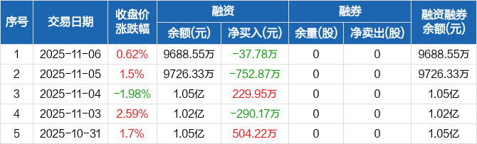 海锅股份:融资净偿还37.78万元,融资余额9688.55万元(11-06)
