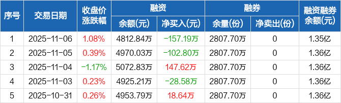 1000ETF:融资余额4812.84万元,创近一年新低(11-06)