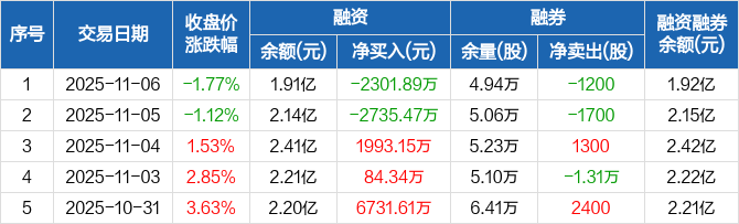 朗姿股份:融资净偿还2301.89万元,融资余额1.91亿元(11-06)