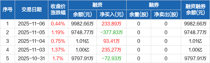 集泰股份:融资净买入233.89万元,融资余额9982.66万元(11-06)