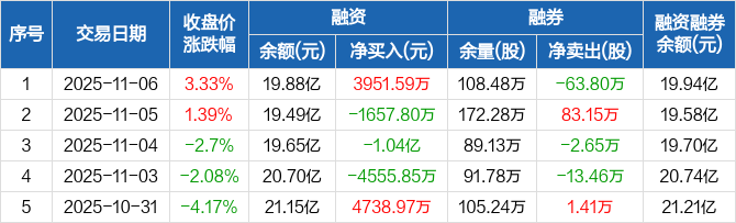 铜陵有色:融资净买入3951.59万元,融资余额19.88亿元(11-06)