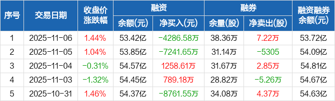 美的集团:融资净偿还4286.58万元,融资余额53.42亿元(11-06)