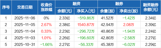晋控电力:融资净偿还519.86万元,融资余额2.33亿元(11-06)