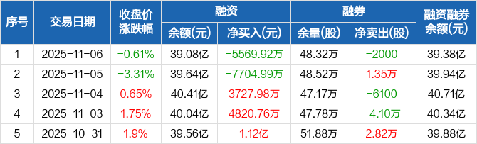 润和软件:融资净偿还5569.92万元,融资余额39.08亿元(11-06)