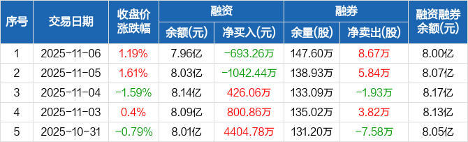 河钢股份:融资净偿还693.26万元,融资余额7.96亿元(11-06)