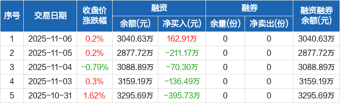 中药ETF:融资净买入162.91万元,融资余额3040.63万元(11-06)