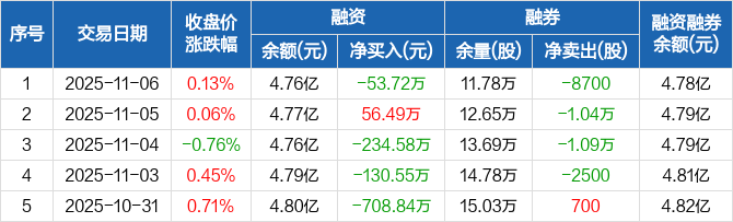 顺鑫农业:融资净偿还53.72万元,融资余额4.76亿元(11-06)