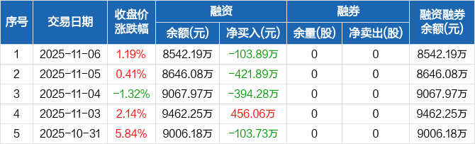 双乐股份:融资余额8542.19万元,创近一年新低(11-06)