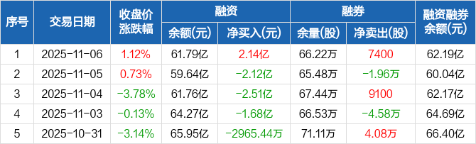 立讯精密:融资净买入2.14亿元,融资余额61.79亿元(11-06)