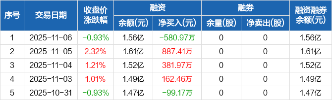 金百泽:融资净偿还580.97万元,融资余额1.56亿元(11-06)