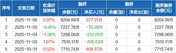 争光股份:融资净买入977.21万元,融资余额8204.99万元(11-06)