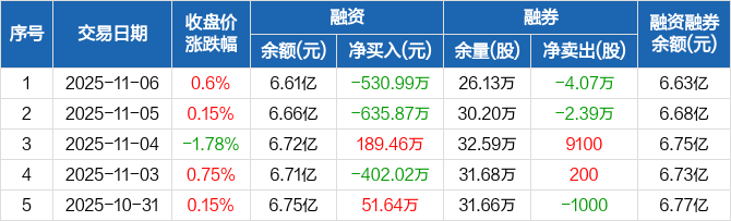 聚飞光电:融资净偿还530.99万元,融资余额6.61亿元(11-06)