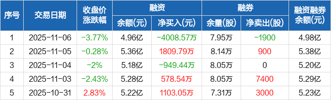 新疆交建:融资净偿还4008.57万元,融资余额4.96亿元(11-06)