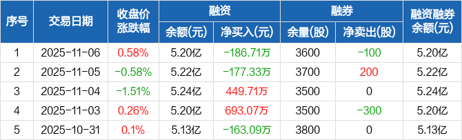 新劲刚:融资净偿还186.71万元,融资余额5.2亿元(11-06)