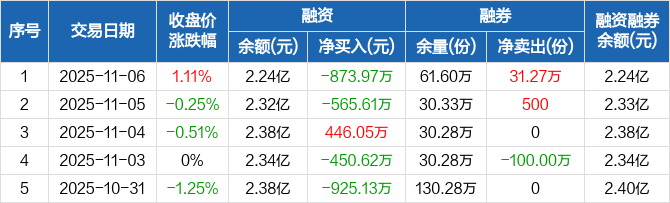 券商ETF:融资净偿还873.97万元,融资余额2.24亿元(11-06)