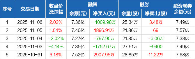 新宙邦:融资净偿还1009.98万元,融资余额7.36亿元(11-06)