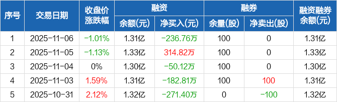君逸数码:融资净偿还236.76万元,融资余额1.31亿元(11-06)