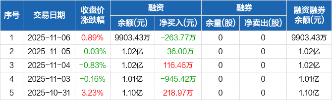 泰祥股份:融资净偿还263.77万元,融资余额9903.43万元(11-06)