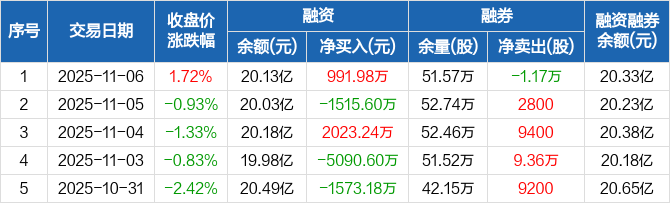 南大光电:融资净买入991.98万元,融资余额20.13亿元(11-06)