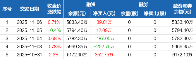 优宁维:融资净买入39.01万元,融资余额5833.4万元(11-06)