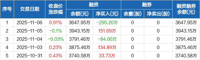 智迪科技:融资净偿还295.2万元,融资余额3647.95万元(11-06)