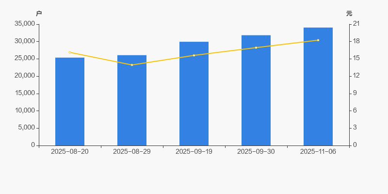 自2025年8月20日以来,公司股东户数连续4期上涨,截至目前增幅为34.20%。2025年8月20日至2025年11月6日区间股价上涨13.08%。