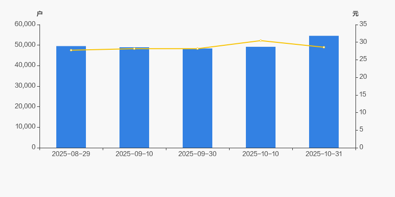 2025年8月29日至今,公司股东户数显著增长,区间涨幅为10.11%。2025年8月29日至2025年10月31日区间股价上涨3.03%。