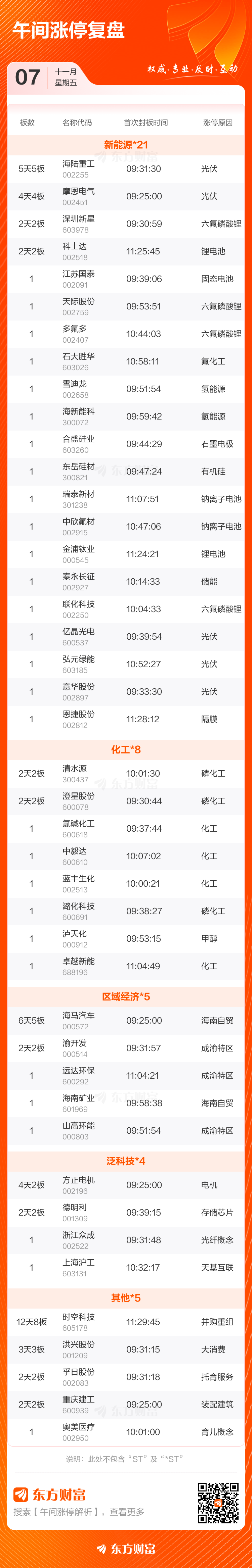 11月7日午间涨停复盘:50股涨停 海陆重工5天5板