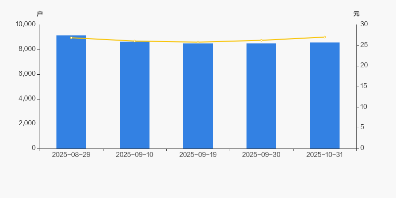 2025年8月29日至今,公司股东户数有所下降,区间跌幅为6.24%。2025年8月29日至2025年10月31日区间股价上涨0.60%。