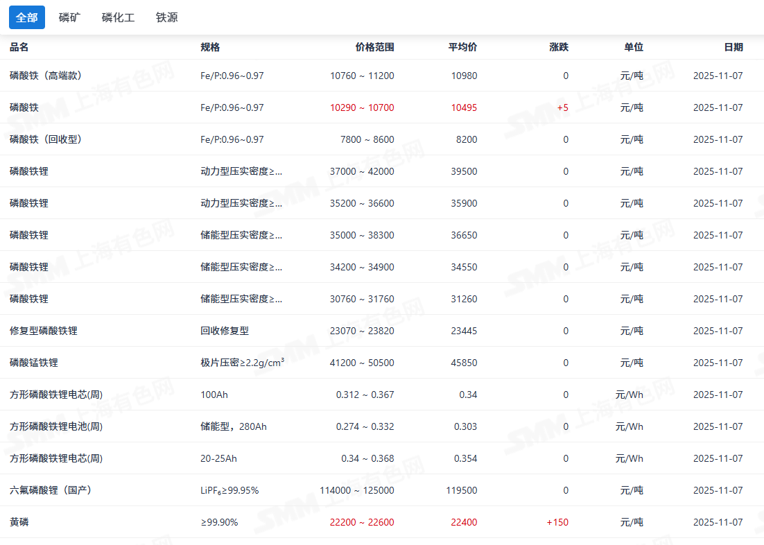 消息面上,六氟磷酸锂、黄磷价格近日持续走高,据上海有色网数据,11月7日,六氟磷酸锂(国产)平均价达11.95万元/吨,黄磷(≥99.90%)平均价为2.24万元/吨。