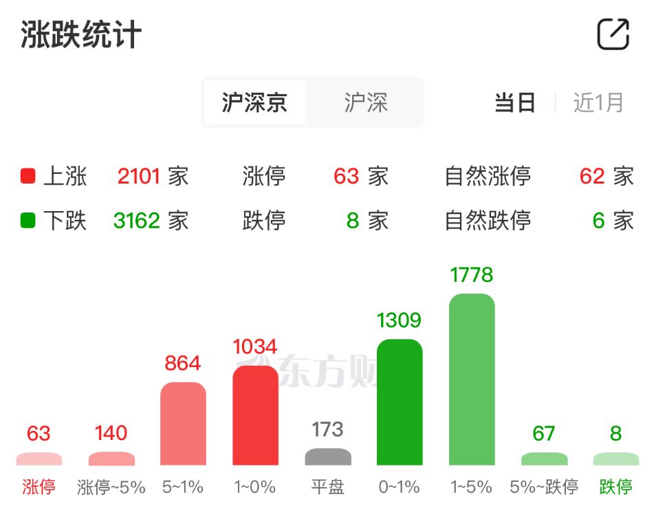 化工、光伏产业链、海南等板块全天维持强势,福建板块午后拉升,漳州发展、三木集团封涨停;汽车零部件、AI应用、人形机器人等板块今日跌幅居前。个股方面,全市场超3100股下跌,但仍有60余股涨停,封板率约62%。