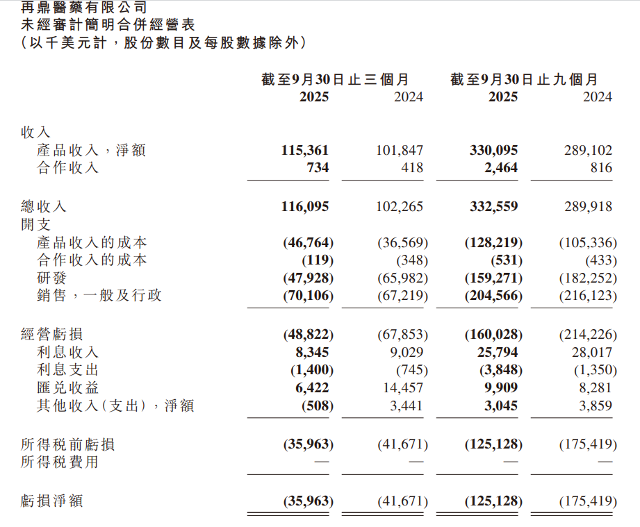 消息面上,再鼎医药于11月6日晚间披露2025年第三季度业绩。报告期内,公司实现总收入1.16亿美元,同比增长14%;亏损净额为3596.3万美元,同比有所收窄。公司收入增长主要是由纽再乐和鼎优乐销售额增长所驱动,部分被则乐销量放缓所抵销。