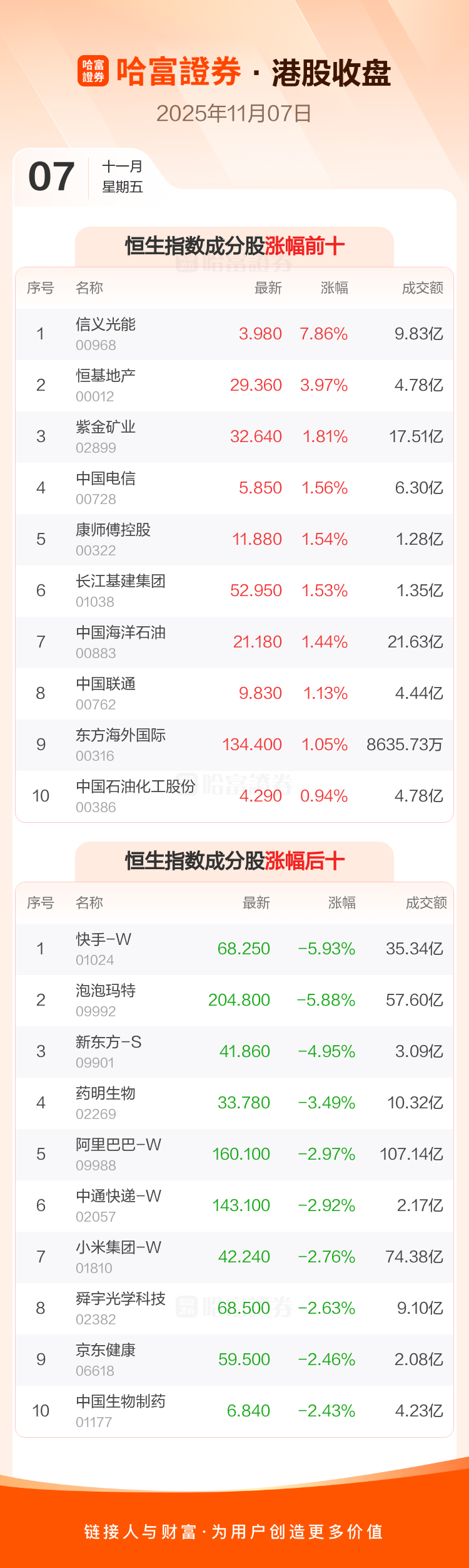 港股收盘:恒指跌0.92% 快手-W领跌成分股