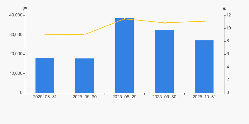 2025年3月31日至今,公司股东户数显著大幅增长,区间涨幅达50.32%。2025年3月31日至2025年10月31日区间股价上涨23.04%。