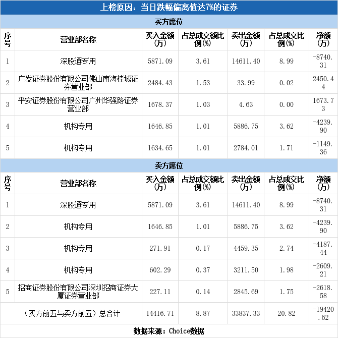 今日龙虎榜单上出现了深股通的身影,占据了买一、卖一的位置,净卖出8740.31万元,占当日成交总额的5.38%。