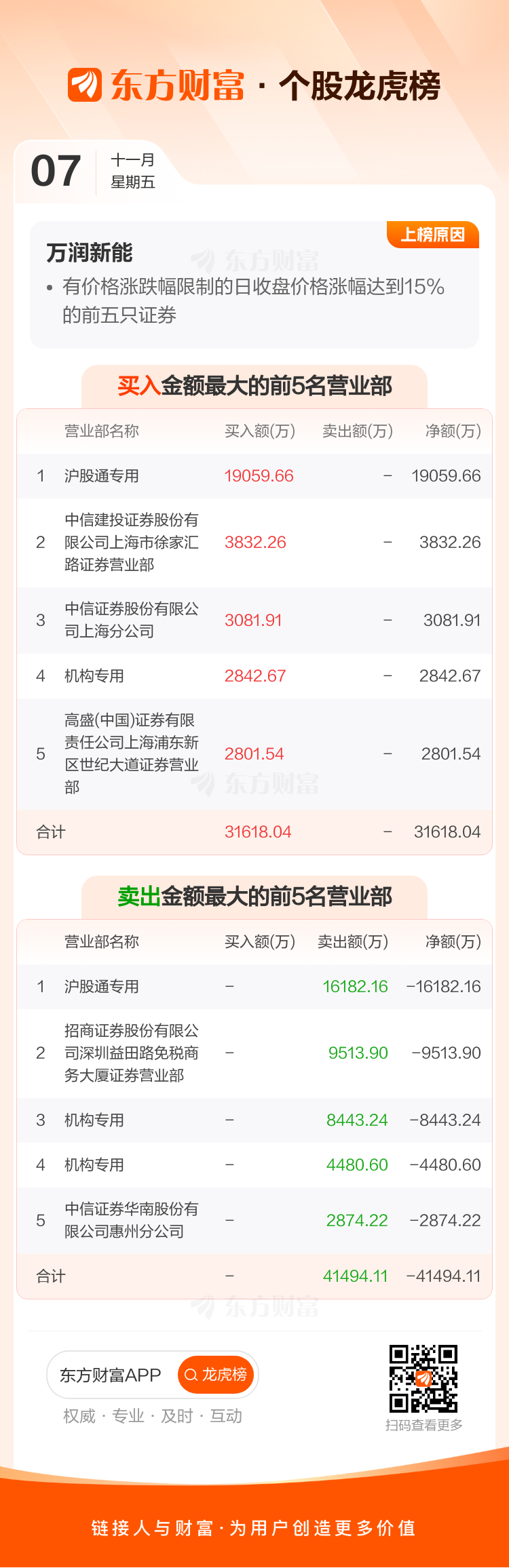万润新能(688275)龙虎榜数据(11-07)
