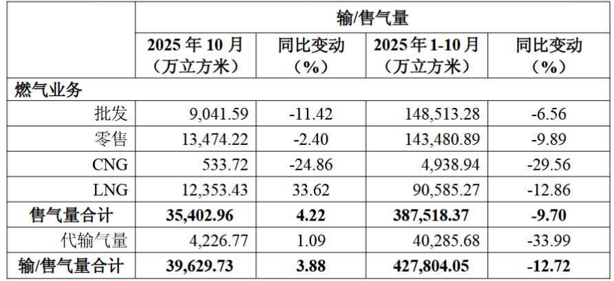 新天绿能现“冰火两重天”:10月发电量同比降20.97%,输/售气量增长3.88%