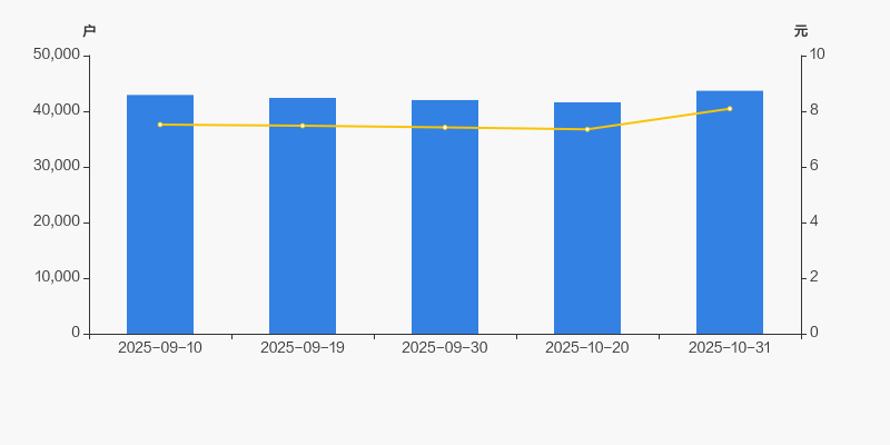 2025年9月10日至今,公司股东户数有所增长,区间涨幅为1.76%。2025年9月10日至2025年10月31日区间股价上涨7.58%。