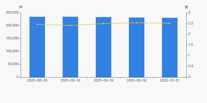 截至2025年10月31日,公司最新总股本为103.37亿股,其中流通股本为103.35亿股。户均持有流通股数量由上期的4.46万股上升至4.48万股,户均流通市值11.23万元。