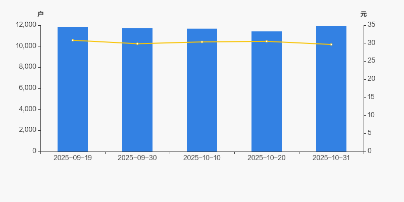 2025年9月19日至今,公司股东户数有所增长,区间涨幅为0.83%。2025年9月19日至2025年10月31日区间股价下降3.79%。