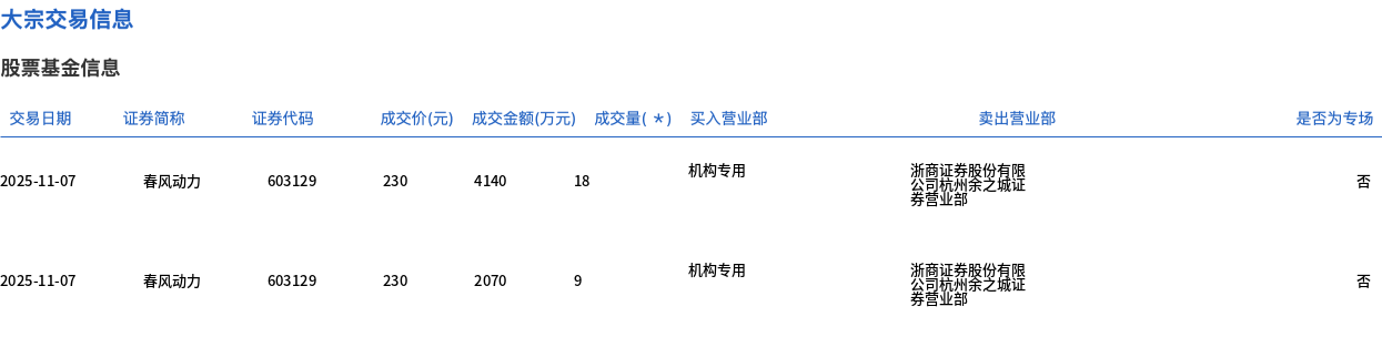 春风动力今日大宗交易折价成交27万股,成交额6210万元