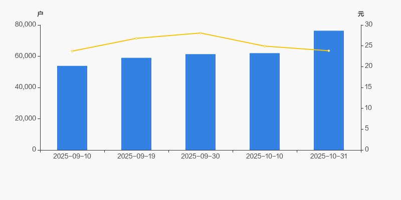 自2025年9月10日以来,公司股东户数连续4期上涨,截至目前增幅为41.79%。2025年9月10日至2025年10月31日区间股价上涨0.38%。