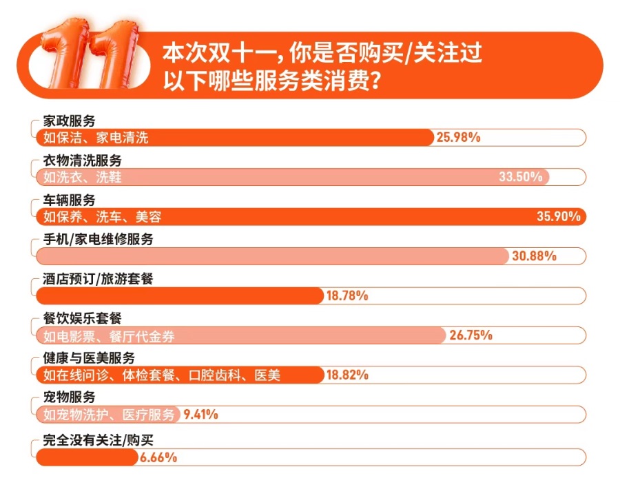 二、 服务类消费双十一期间呈现“高频、多类、实用性强”特征