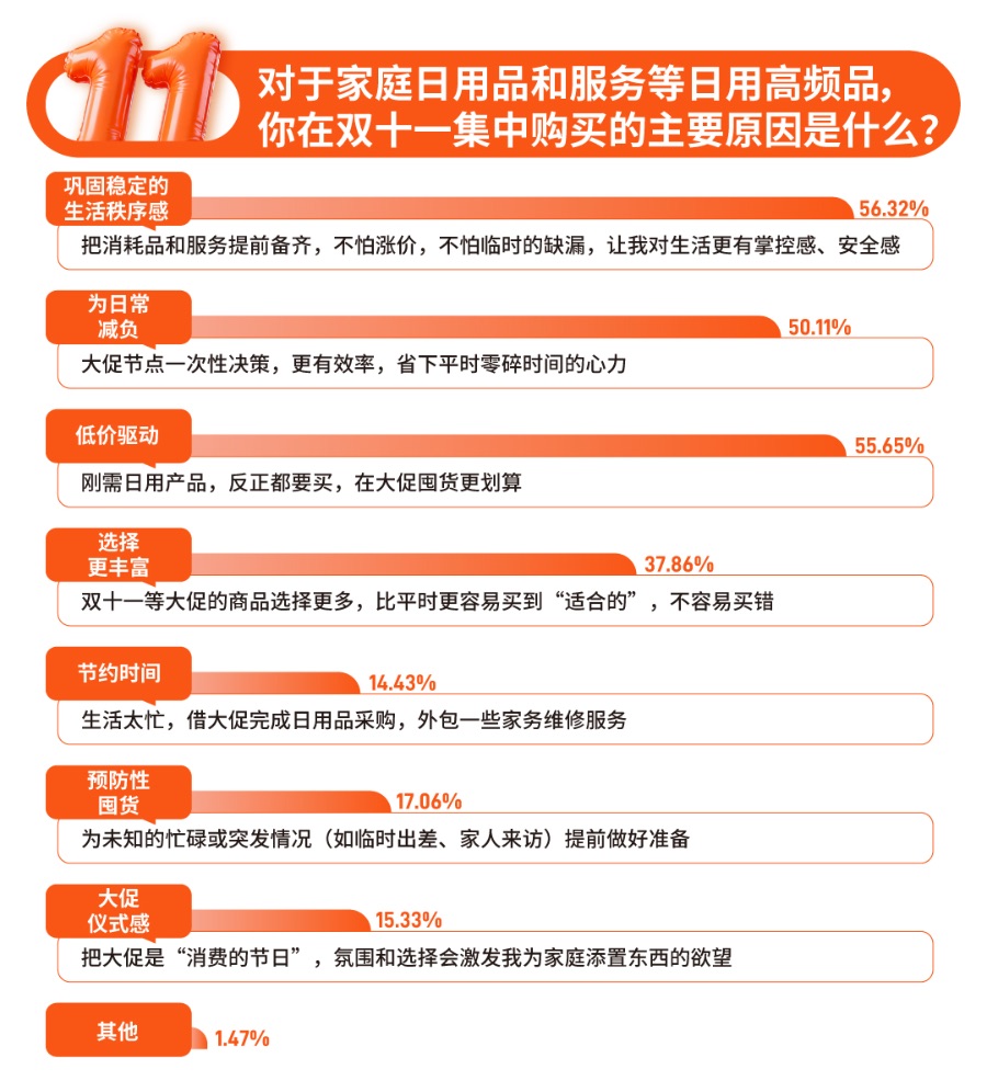 双十一调研:家庭消费追求“秩序感”,京东高质低价成首选平台