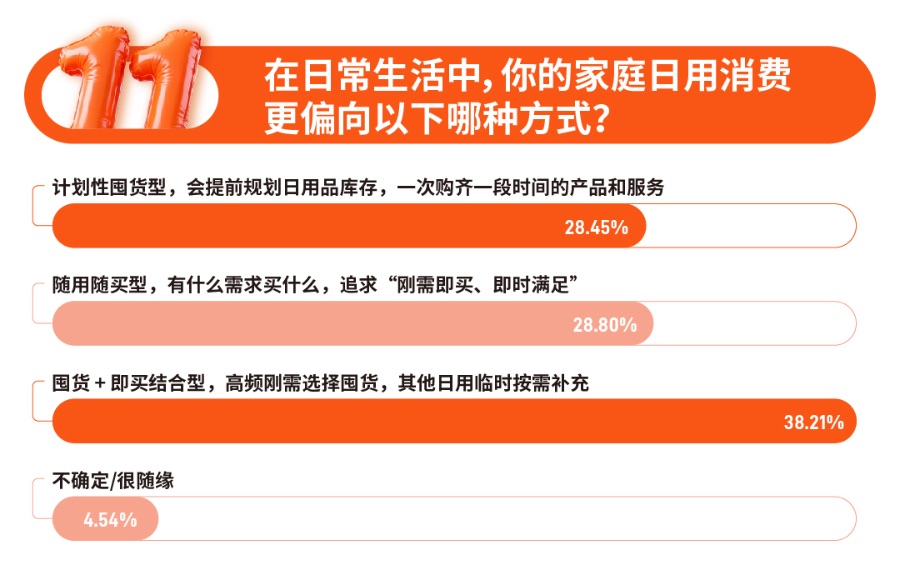 二、理性囤货成主流,“规划性囤货+即时补充即买”结合型占比近四成