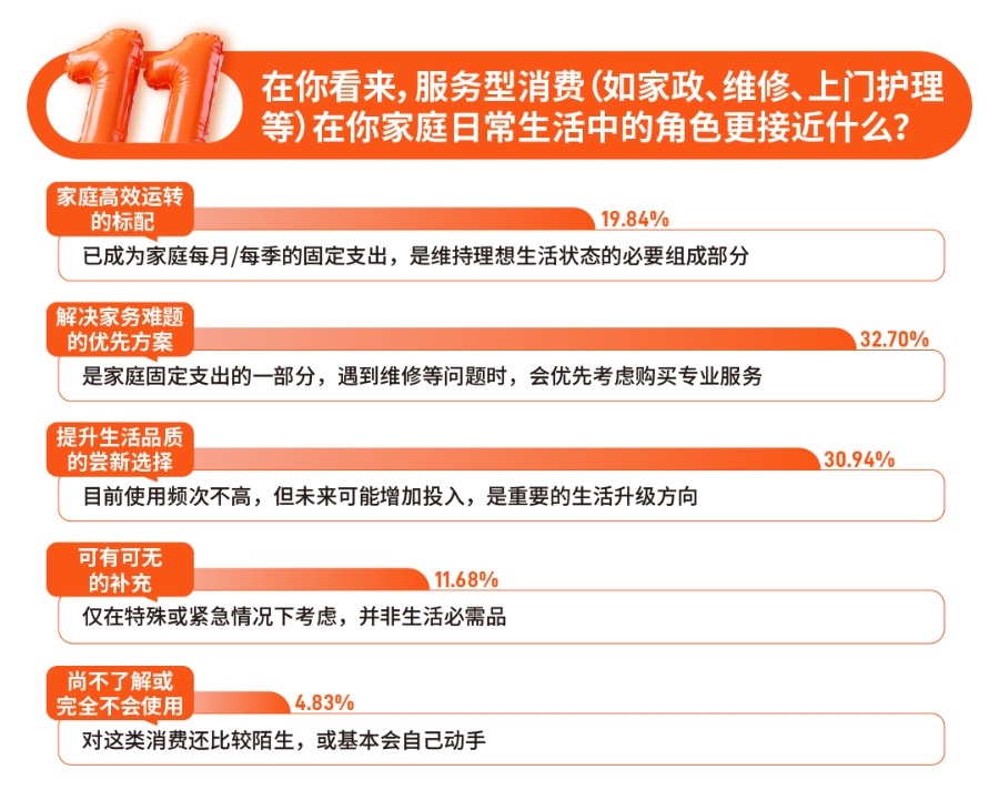 1. 过半家庭将服务消费视为“标配”与“优先解决方案”