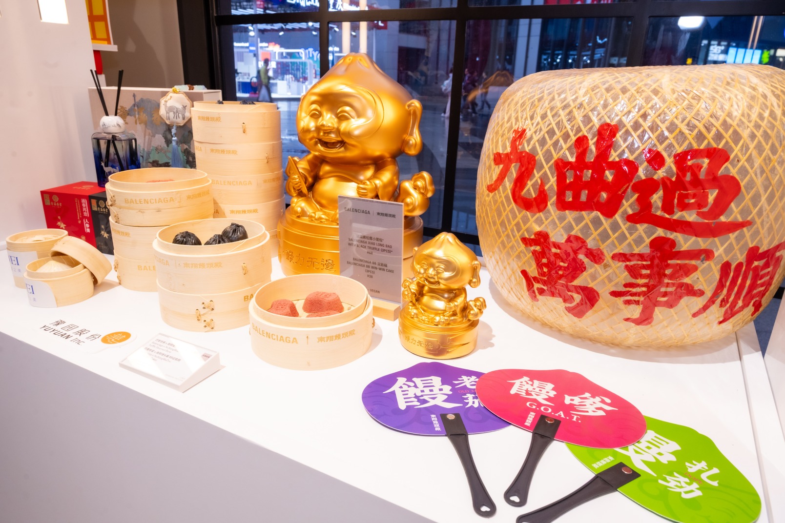 在品牌跨界领域,百年老字号南翔馒头展示了其与法国时尚品牌巴黎世家展开创意合作,推出的融合中西特色的限定美食黑松露小笼包以及兼具传统与时尚的定胜糕。南翔馒头还与美妆品牌WEI蔚蓝之美跨界联名,带来小笼包造型手工皂,进一步拓展了老字号在生活美学领域的表达维度。