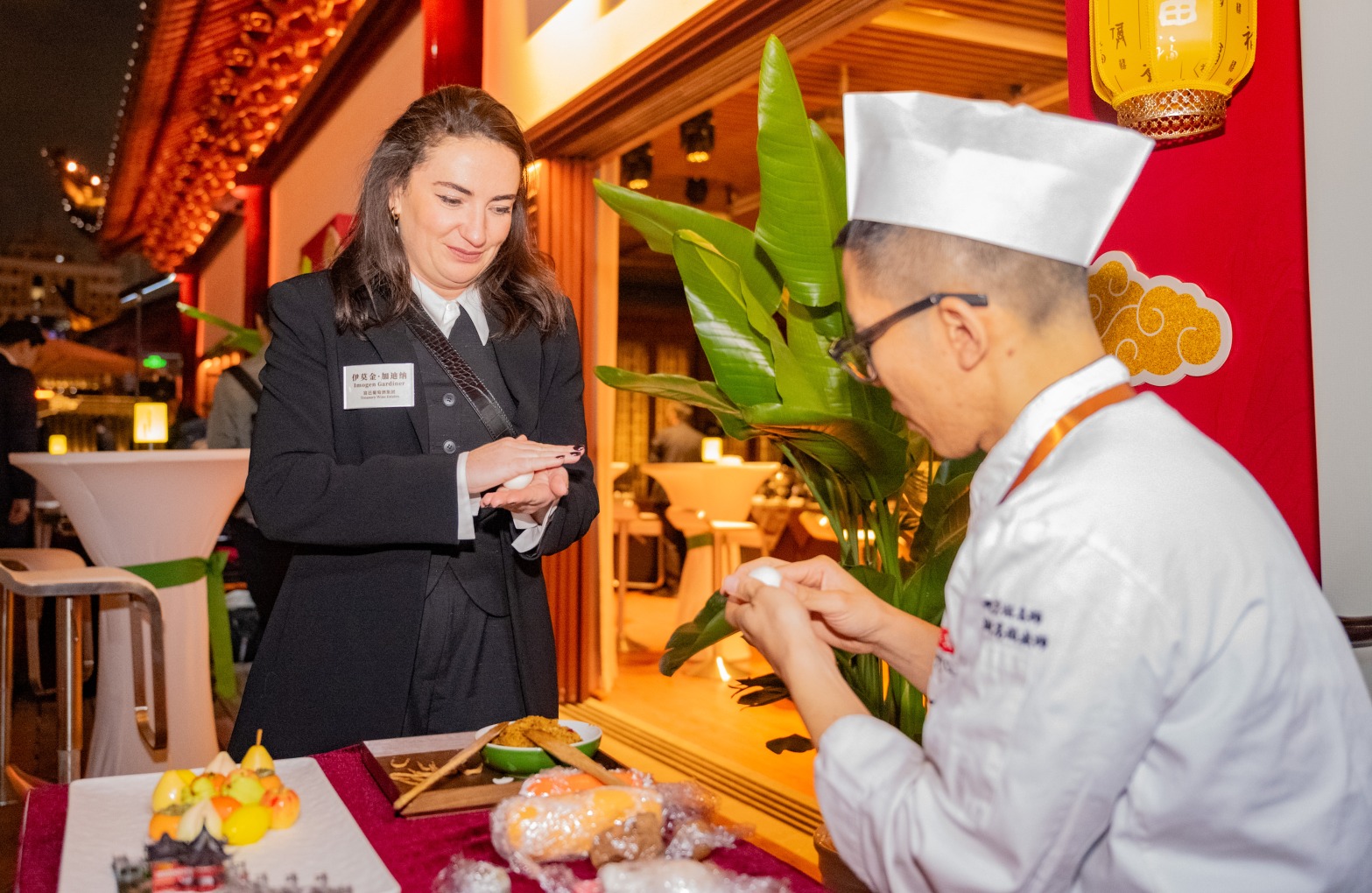 在豫园商城的海上梨园,嘉宾们沉浸于一场中国传统艺术的盛宴,昆曲的婉转悠扬与民乐的清越动听交织成韵,尽显东方文化之美。与此同时,现场还精心安排了老字号匠心技艺的体验环节:绿波廊的点心大师现场展示海派点心制作绝技,丽云阁的扇面画师们挥毫泼墨,为嘉宾们量身定制个性扇面……