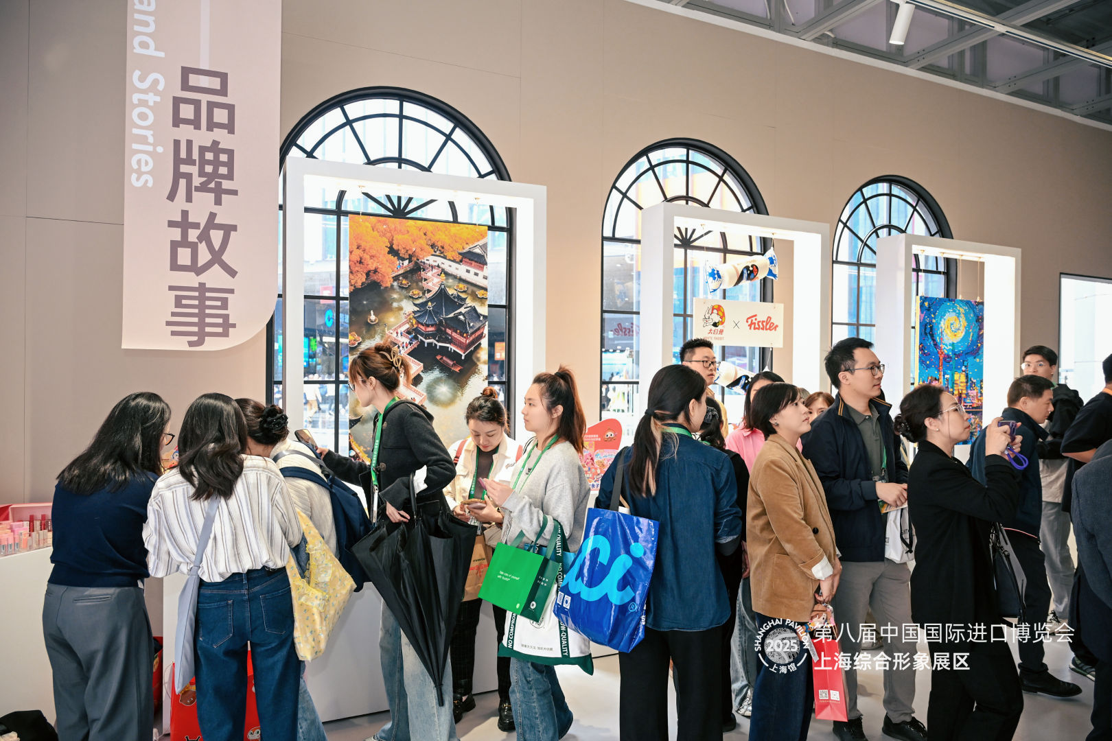 本届进博会上,豫园股份旗下多个品牌入驻上海城市形象馆展区,以“跨界新生”为主题,系统呈现老字号品牌探索跨界破圈的实践与文化出海的成果。