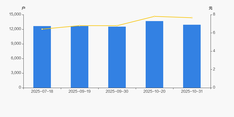 2025年7月18日至今,公司股东户数有所增长,区间涨幅为2.19%。2025年7月18日至2025年10月31日区间股价上涨19.50%。